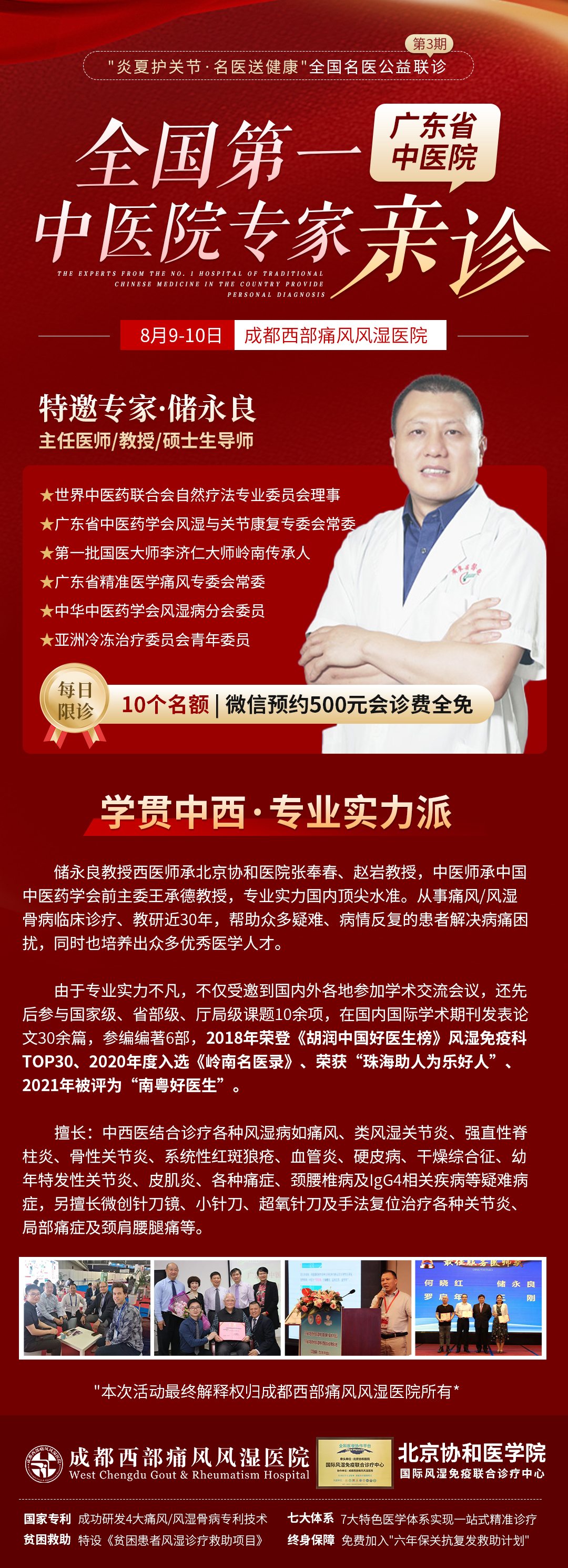 夏季是治疗痛风、风湿骨病的最好时机,此次会诊为广大患者提供了“家门口”接触国内顶级专家的机会,结合中西医优势,助力实现减停药与长期抗复发的双重目标,千万别错过!